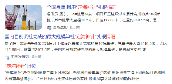 Recently, information about the "heaviest single pile nationwide" and the "sea stabilizing needle" of wind power has gone viral on the internet. This refers to the 10th pile foundation from the 350MW Shenhua No. 2 Offshore Wind Power Project (hereinafter referred to as the "Shenhua No. 2 Project") in Jieyang City, Guangdong Province, which is currently the largest and heaviest single pile in China.