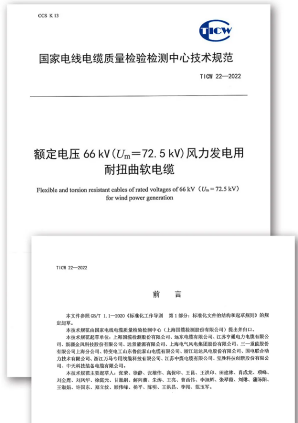 Notably, the TICW22-2022 Technical Specification for 66kV (Um=72.5kV) Wind Power Torsion-Resistant Flexible Cable, in which Far East Cable participated in formulating, has been officially released, playing a positive role in cable selection and safe operation of large-power offshore wind turbines, and demonstrating Far East Cable's leading position in 66kV high-voltage torsion-resistant flexible cable R&D.