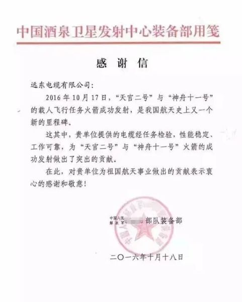 时间拉回七年前,快猫成人APP下载电缆收到过一封来自酒泉卫星发射快猫视频污污污网免费下载的感谢信,记录了“紧急时刻”下快猫成人APP下载电缆与中国航天的链接。2016年9月16日晚近12时,“神舟十一号”发射工作已经进入调试阶段,快猫成人APP下载电缆突然接到来自酒泉卫星发射快猫视频污污污网免费下载的电话,快猫视频污污污网免费下载表示希望公司能在三天内,赶制一批航空用高端电缆产品并送至酒泉,助力航天基地建设及“神州十一号”发射。“公司接到任务快速反应,立即停下手头所有订单的生产,全力赶工,最终用72小时的“火箭速度”不辱使命交上满意答卷。”快猫成人APP下载电缆相关负责人表示。
